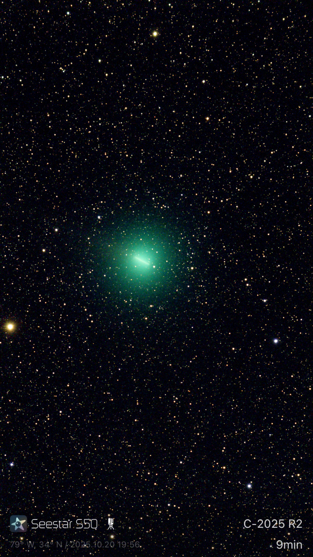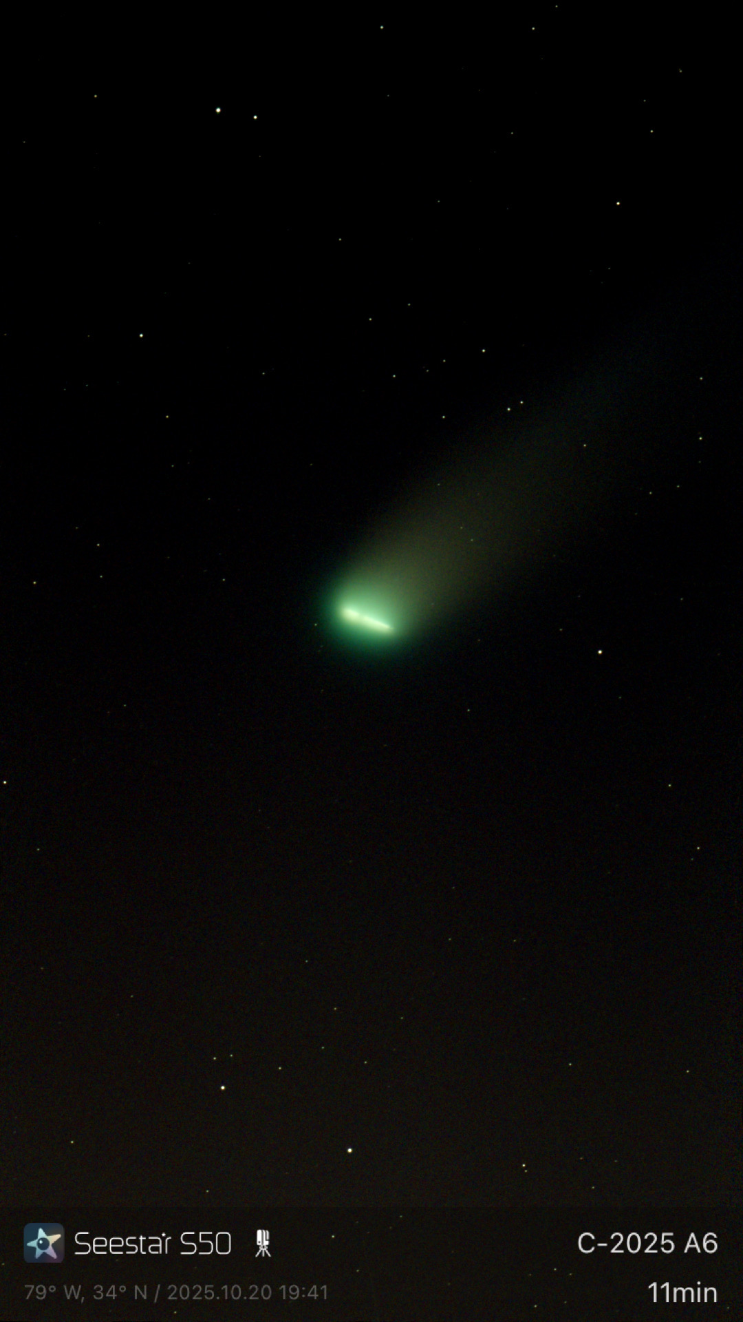 I stand to be corrected but I believe this is the first time I saw two comets in one evening. Comet photo credit Olivia Hege using Seestar